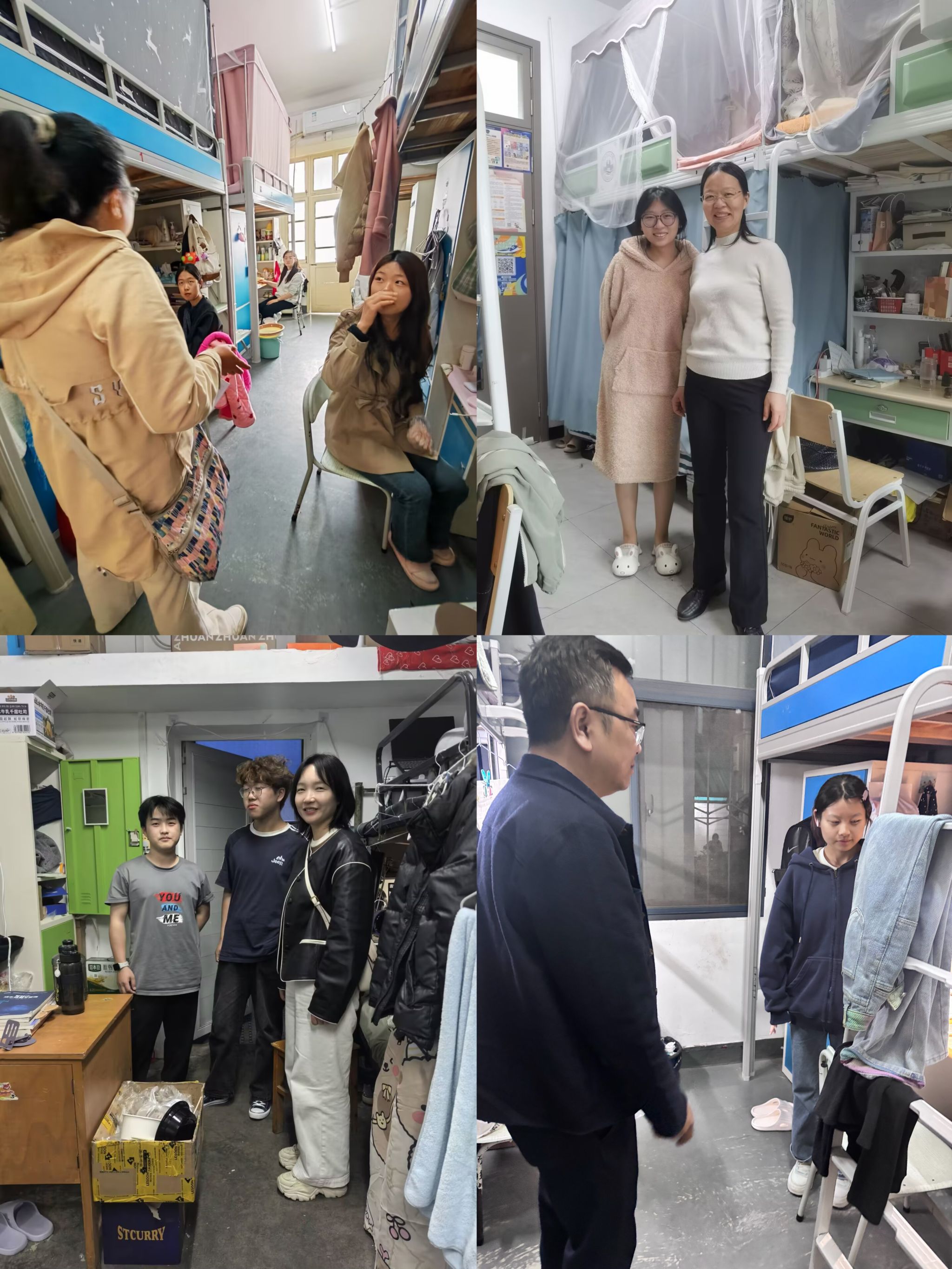 访寝过程中,老师们与同学们进行亲切交谈,向同学们了解日常宿舍生活情况,询问同学们的学习情况以及生活中遇到的问题并给予了合理化生活建议。了解学生假期安排,强调宿舍安全问题,排查宿舍安全隐患,进一步强化安全教育效果。对于离家甚远不方便回家的同学,老师们也给予了特别的关怀与鼓励,让同学们感受到了家的温暖。