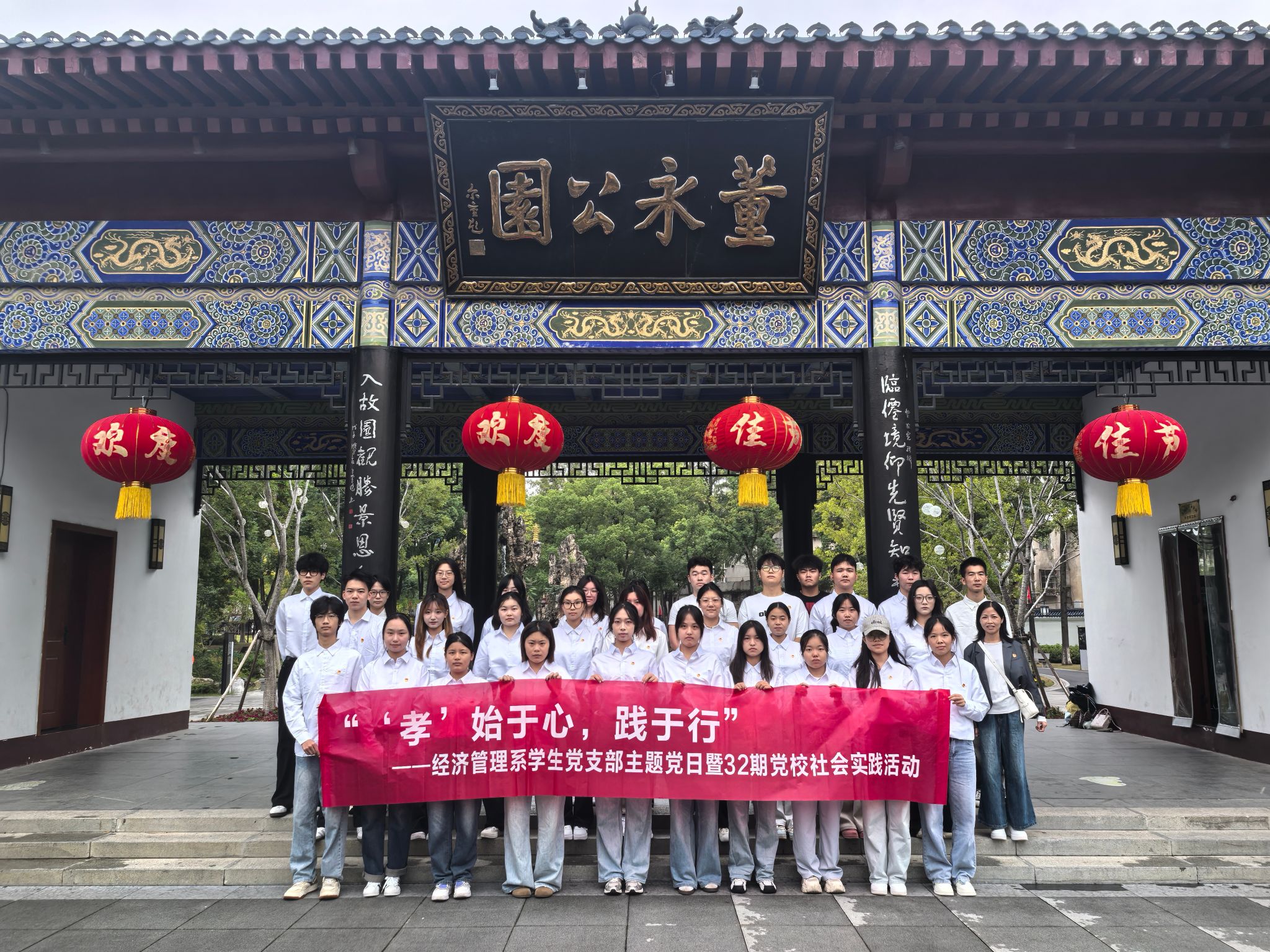 为深入弘扬中华优秀传统文化,培育学生党员与入党积极分子的孝亲感恩意识,30号上午,我系学生党支部组织全体学生党员及第32期入党积极分子党校学员,赴孝感董永公园开展“‘孝’始于心,践于行”社会实践活动。