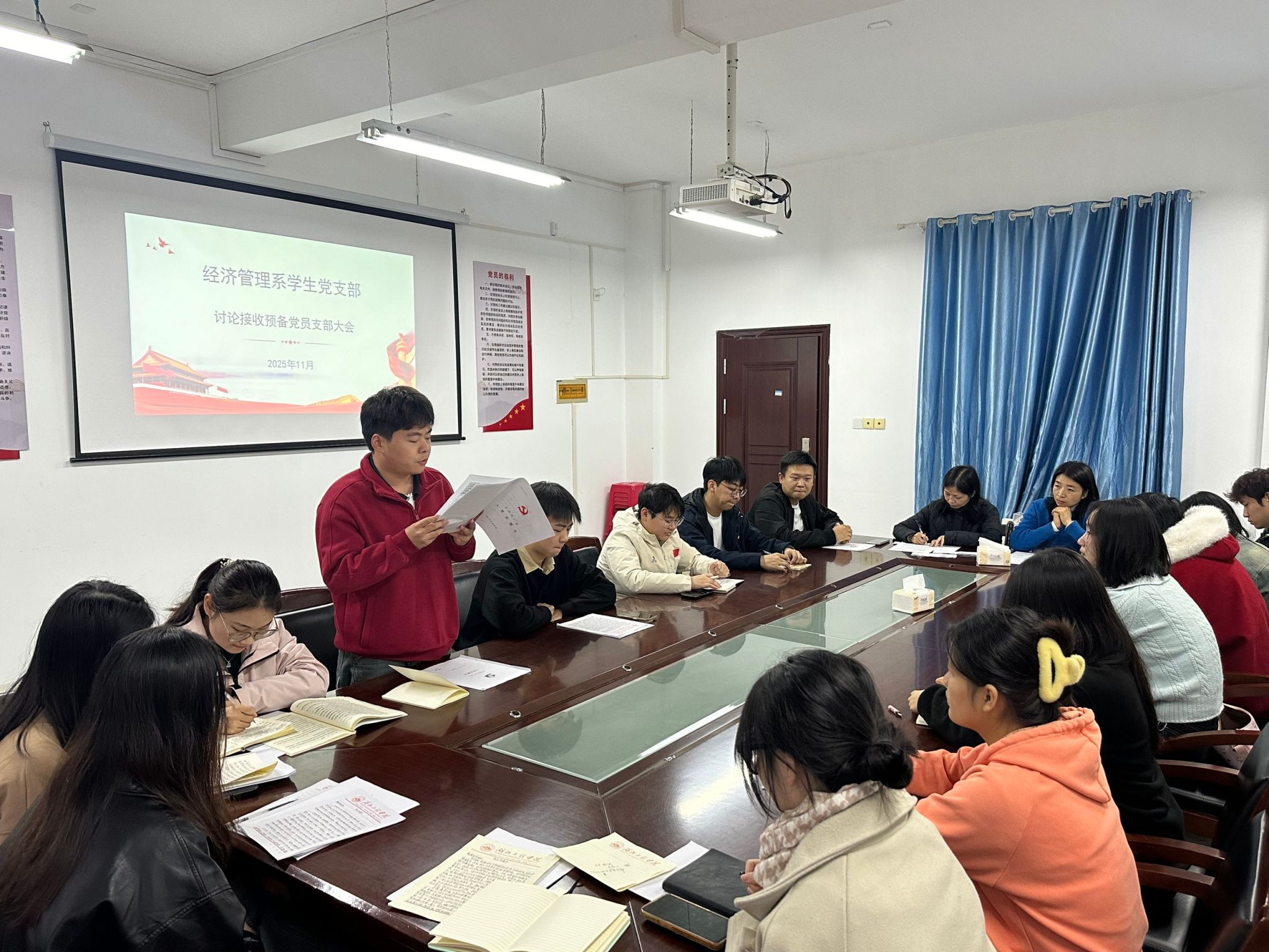为进一步加强党员队伍建设,注入新鲜血液,11月6日下午,我系学生党支部全体成员在科技楼三楼党员活动室召开2025年下半年讨论接收预备党员支部大会,会议由学生党支部书记黄思嘉同志主持。